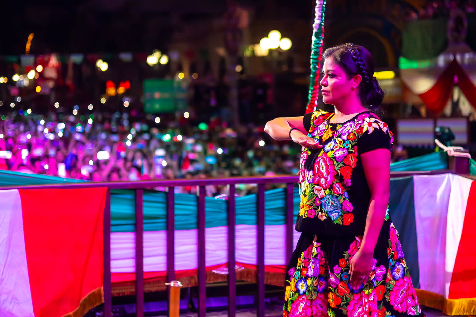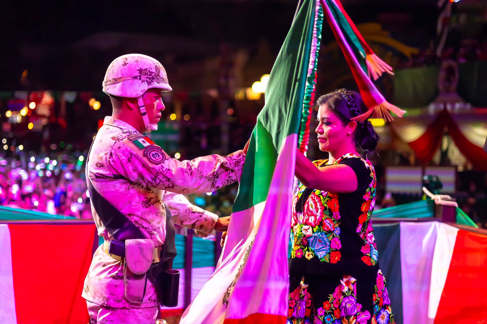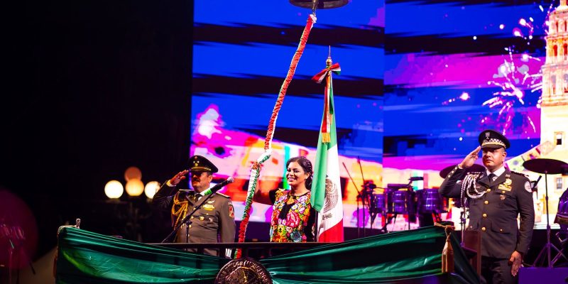 Después del grito de Independencia, la munícipe ondeó la bandera para rememorar el periodo de la historia de México, conocido como la Guerra de Independencia y escuchó la entonación del Himno Nacional Mexicano.