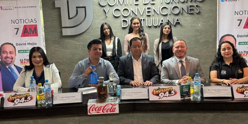 En la conferencia también estuvieron Mtro. Facundo Gámez Hernández, vicepresidente de Turismo de la Canaco-Servytur Tijuana; Lic. Johana Rodríguez López, coordinadora artística del comité organizador; y Gabriela Saucedo, promotora de Adictivo Tequila.