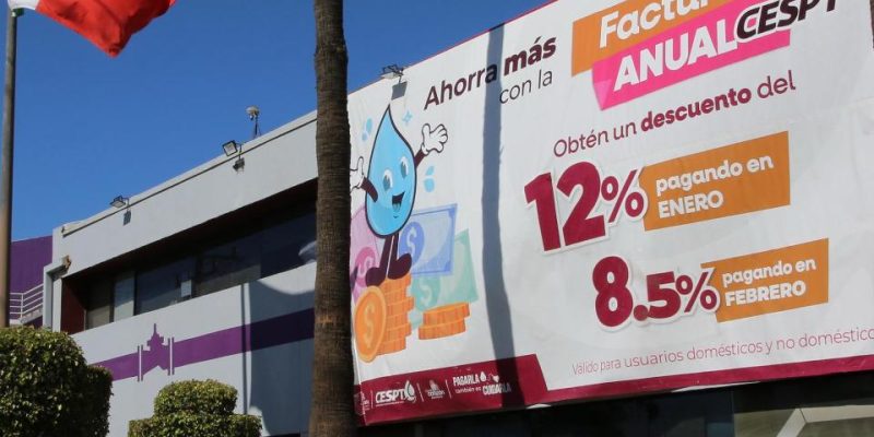 TIJUANA.- La Comisión Estatal de Servicios Públicos de Tijuana (CESPT) recuerda a sus usuarios, tanto del servicio doméstico como no doméstico, que solo queda esta semana para aprovechar el beneficio de un 8.5% de descuento en su servicio de agua, al realizar el pago de su factura anual durante el mes de febrero.